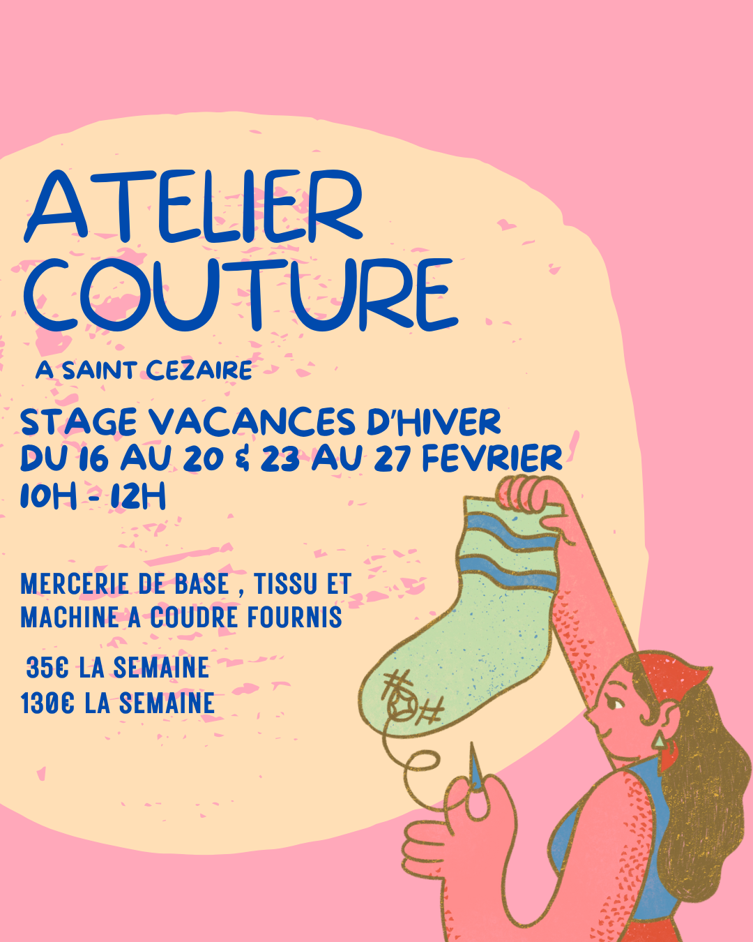 Je propose des ateliers de couture à Saint-Cézaire-sur-Siagne, pendant les vacances scolaires, accessibles à partir de 7 ans et pour tous les niveaux.