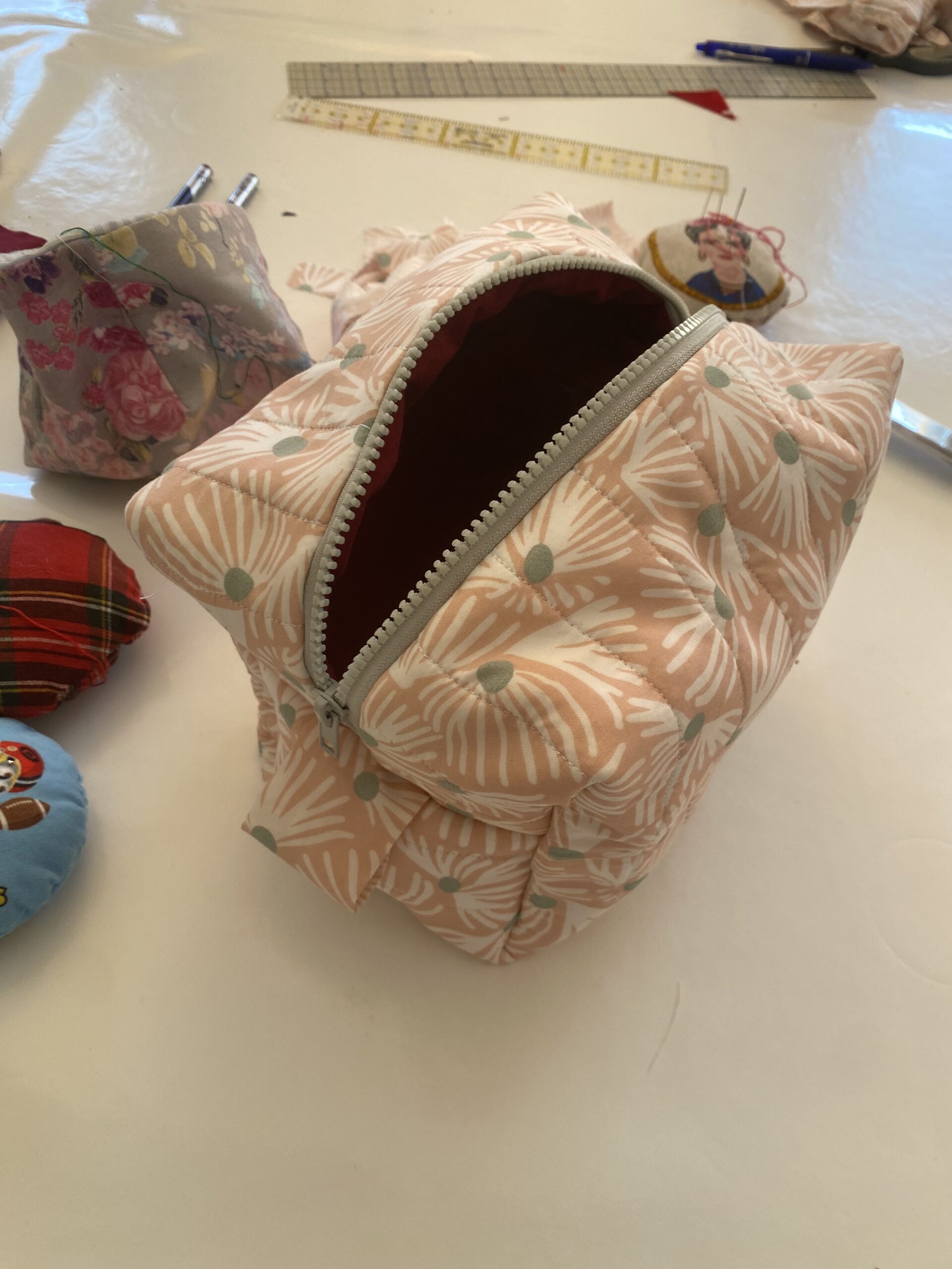 Au programme : la réalisation d’un sac à tarte, d’un sac cabas et de jolies trousses de toilette. Chacun a pu choisir ses tissus, apprendre de nouvelles techniques et repartir avec une création unique, faite de ses propres mains. Voir les sourires à la fin de l’atelier et la fierté de chacun face à son ouvrage est toujours une immense satisfaction.